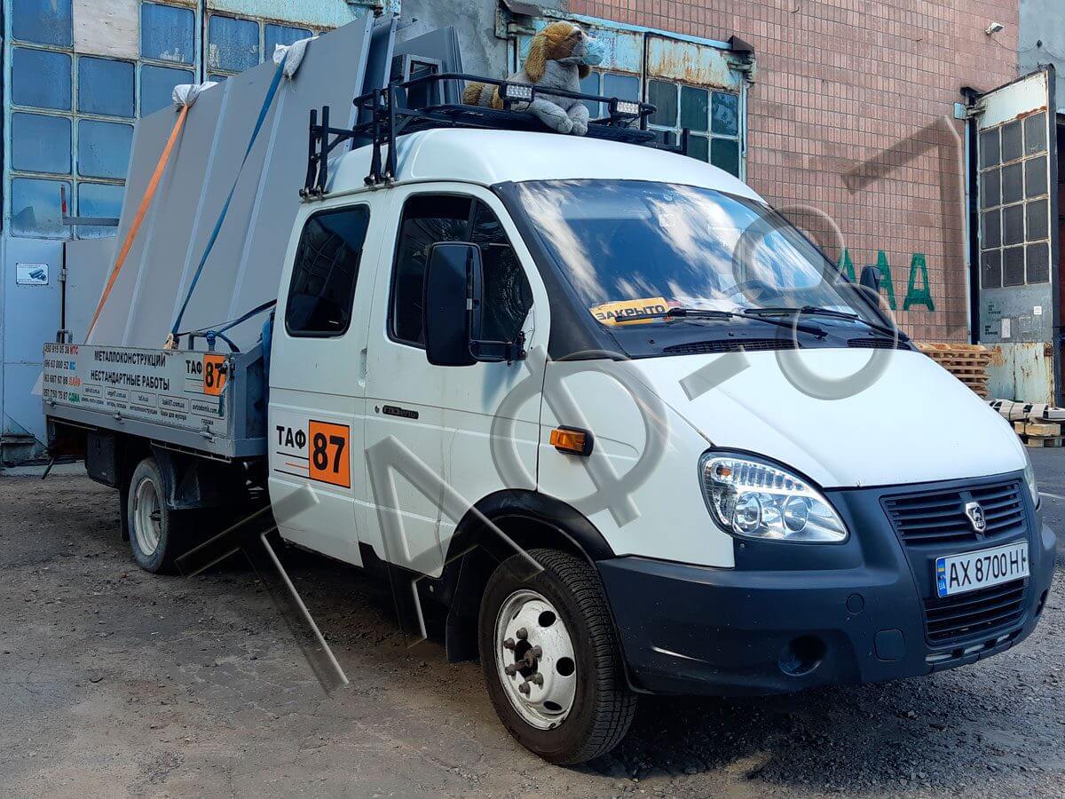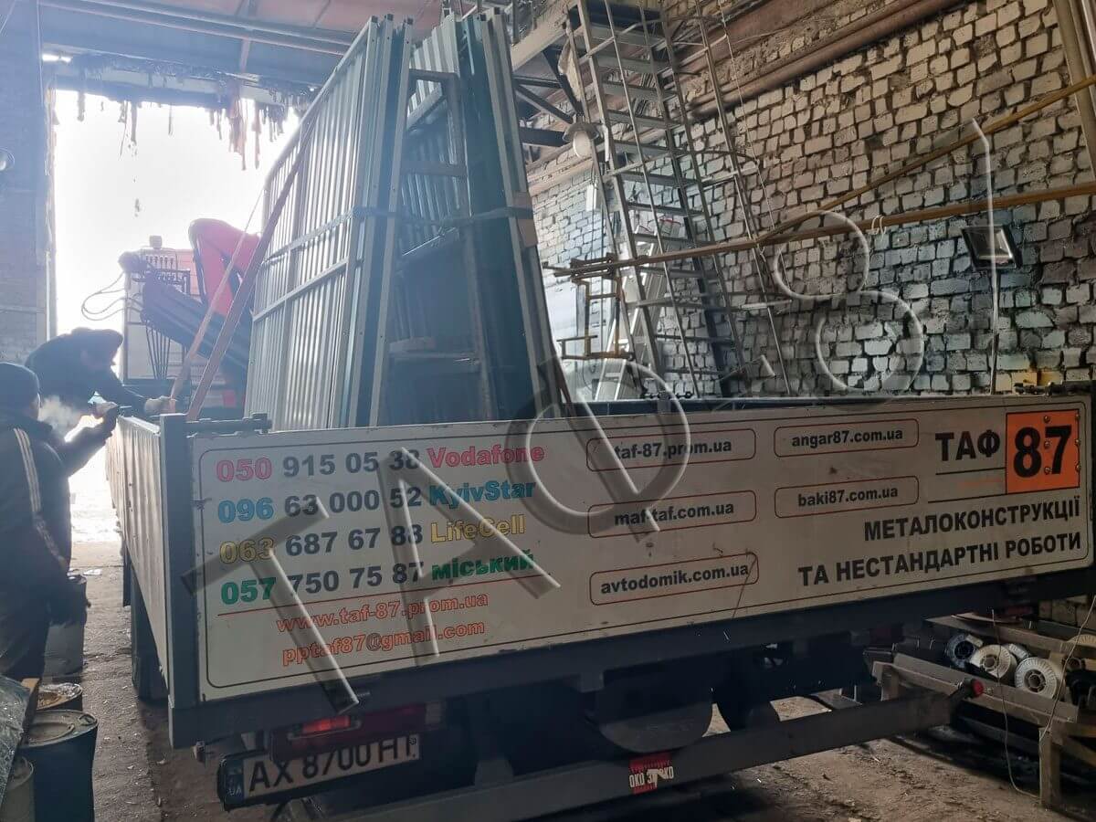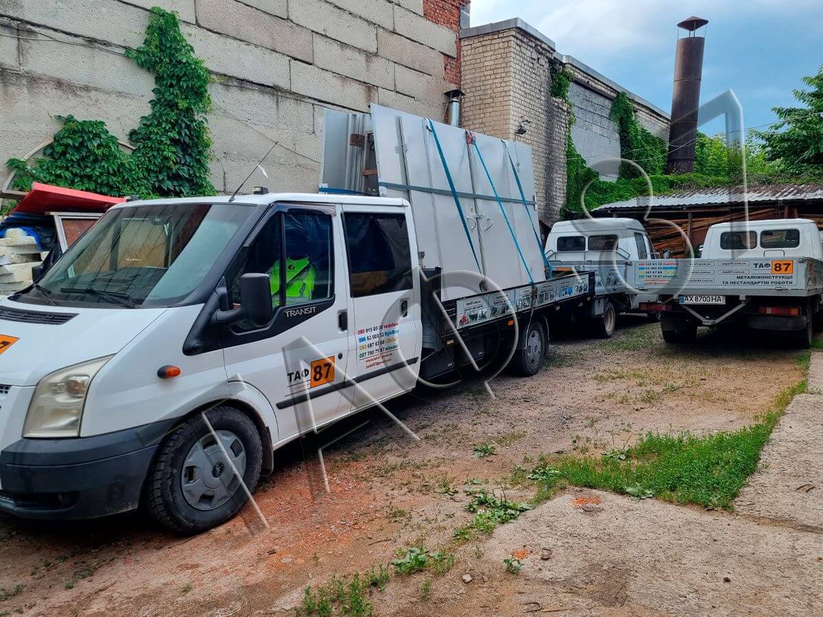 Транспортування: ТАФ-87 забезпечує підходящі транспортні засоби для перевезення металевих конструкцій. Це може бути вантажівка Газель до 2 тонн або спеціалізований транспорт з маніпулятором для перевезення великих та важких завантажень до 5т.